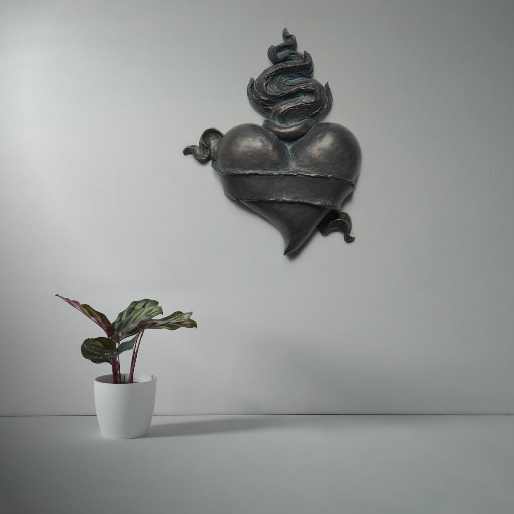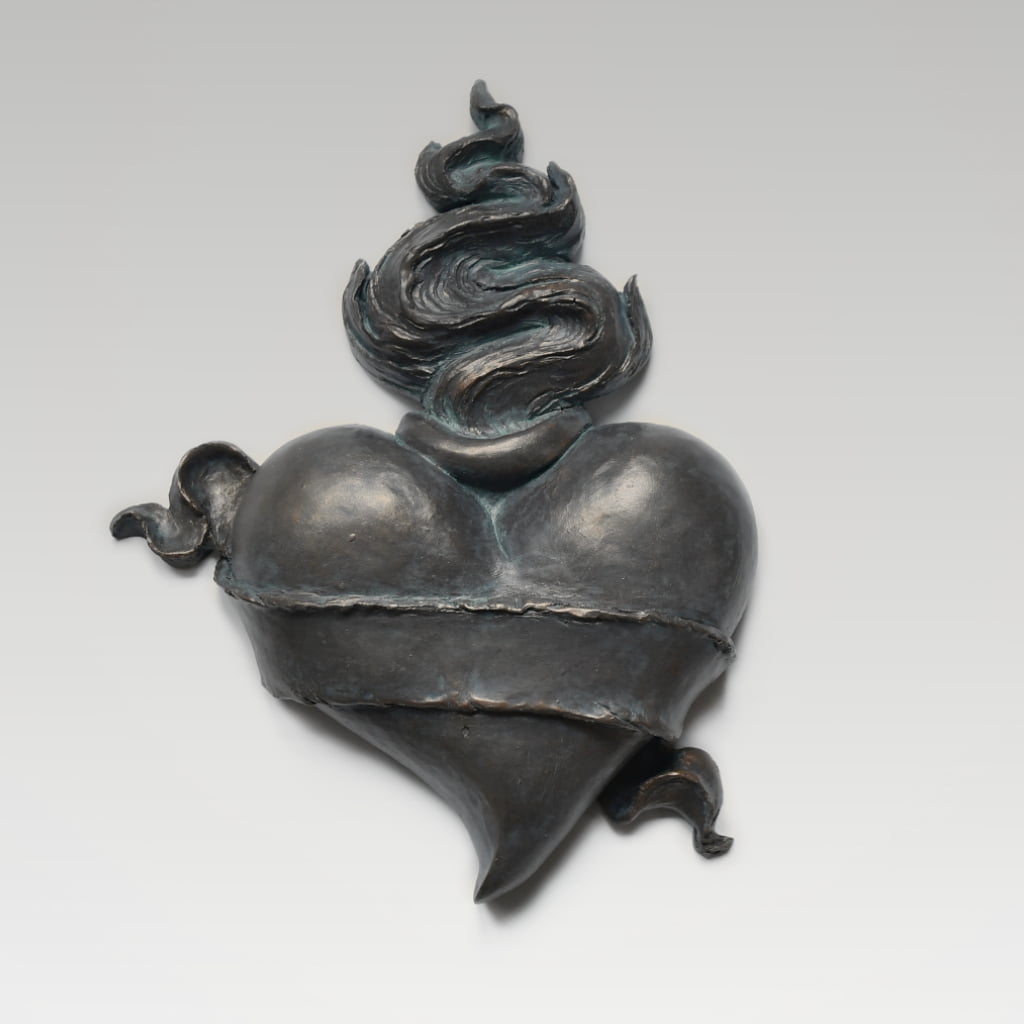 Dit vlammend hart symboliseert de kracht van allesoverwinnende liefde. Zelfs als uw geliefde is heen gegaan blijft de liefde voor eeuwig bestaan.